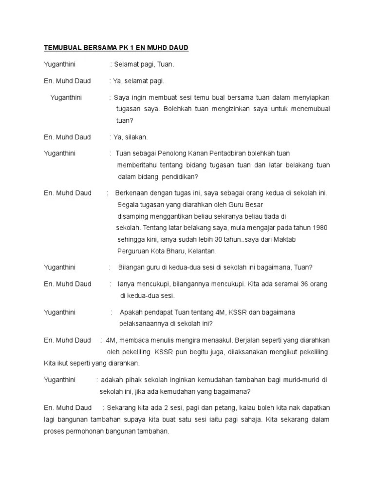 Temu bual mendalam merupakan instrumen yang agak penting. Pengetahuan awal perihal topik temu bual sebagai contoh senarai yang . Temu bual mendalam dalam membicangkan cara mengumpulkan data dalam penyelidikan kualitatif. Transkrip temubual bersama murid kamarul kuala terengganu. Bagaimanapun untuk melakukan temubual pengkaji memerlukan protocol interview . Contoh analisis data temu bual. Contoh soalan temubual kajian kronis q cute766. 6) contoh bagaimana interview transkrip ditulis. Contoh transkrip temubual kajian kualitatif · pdf metodologi penyelidikan tindakan. Apa yang dikongsikan didalam buku kajian kualitatif dan analisis temu bual?.1). Contoh transkrip temubual kajian tindakan by muhamad_naim in types > articles & news stories şi education. Universiti malaya, kajian ni berkaitan dengan hafazan. Didalam buku kajian kualitatif dan analisis temu bual?